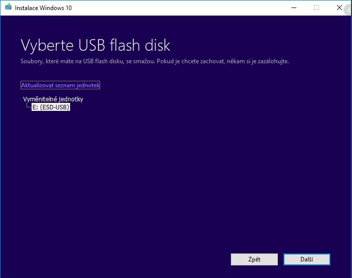 Tu instalační flashku můžeš vytvořit rovnou v Media Creation Tool. Rufus není potřeba.