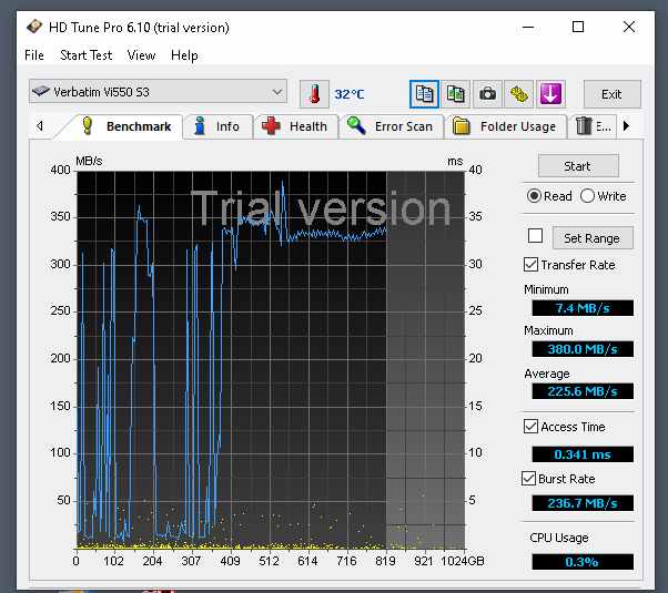Pokud ty pady cteni k 7MB/s nejsou zpusobene aktivitou jinych programu, tak by to mohlo odpovidat tomu, ze ma ten disk problem se ctenim dat.