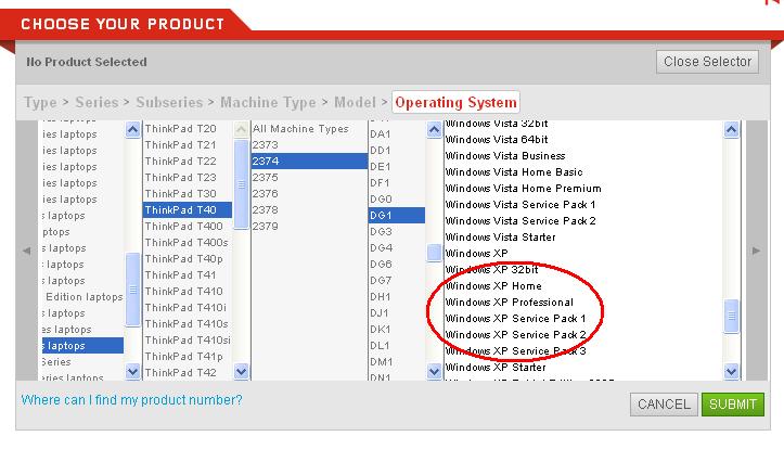 Z tohodle nic. Nejprve tam musíš najít ten tvůj Thinkpad 2374 , ale já ho nenašel. Tam jsou ještě nějaké série A, G, L ad. a já nevím který to přesně je.
