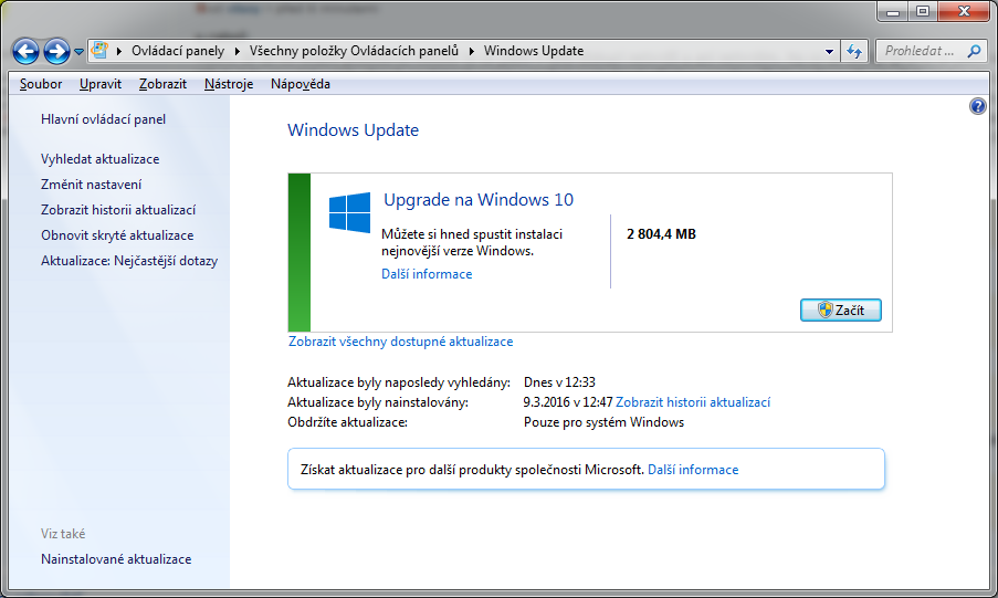 Tady je ukázka jak to vypadá v aktualizacích spuštěných z ovládacího panelu: