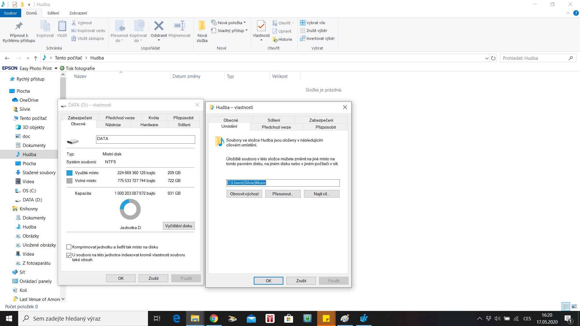 Hlavně už mi ale jde pracovat se složkou Hudba samostatně, to spojení s diskem D zmizelo