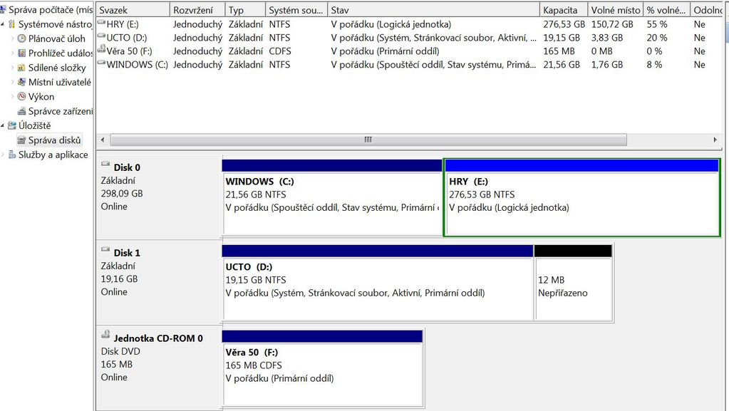 Udělej mi screen ze Správy disků (Počítač->Vlastnosti->Spravovat)