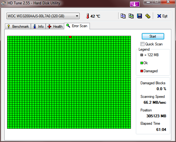 HD Tune: WDC WD3200AAJS-00L7A0 Error Scan