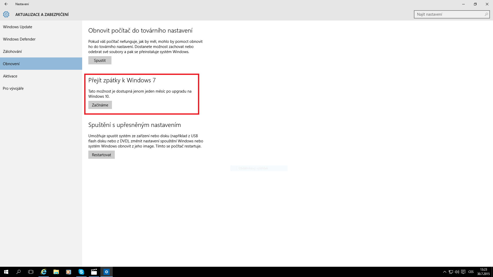 Během jednoho měsíce od upgrade, bude možnost downgrade na 8.1