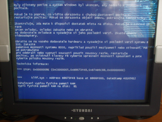 Taky se připojuju k problému mě "modrá smrt" naskočí vždy když chci vypnout modem, naskočí modrá tabulka a konec, taky bych rád věděl co s tím :?