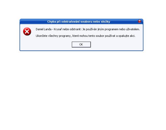 Ahojte. Pro někoho možná prkotina ale mě to občas dost štve. Nevím proč to Windows dělají, když po restartu je vše o.k. Takže snažím se například smazat album Krysař, nejdřív mi win napíšou že složka není prázdná a že ji nemůže vymazat...to mi už přijde divný ale fajn vymažu z ní mp3. Dále chci smazat tu složku a hle...viz hláška. No jenže žádný přehrávač nemám zapnutý(navíc tuto složku jsem si nepouštěl tak 2měsíce), sdílení souborů s nikým v i-netu také ne, žádné stahování nebo cokoli v i-netu nedělám, Atributy jako např. "jen pro čtení" také nemám zaškrtlé...ale složka stále nejde smazat  Jestli jste se s tím někdo už setkal, poraďte mi prosím. Nechce se mi vždy jen kvůli tomuto zbytečně odhlašovat nebo restartovat.