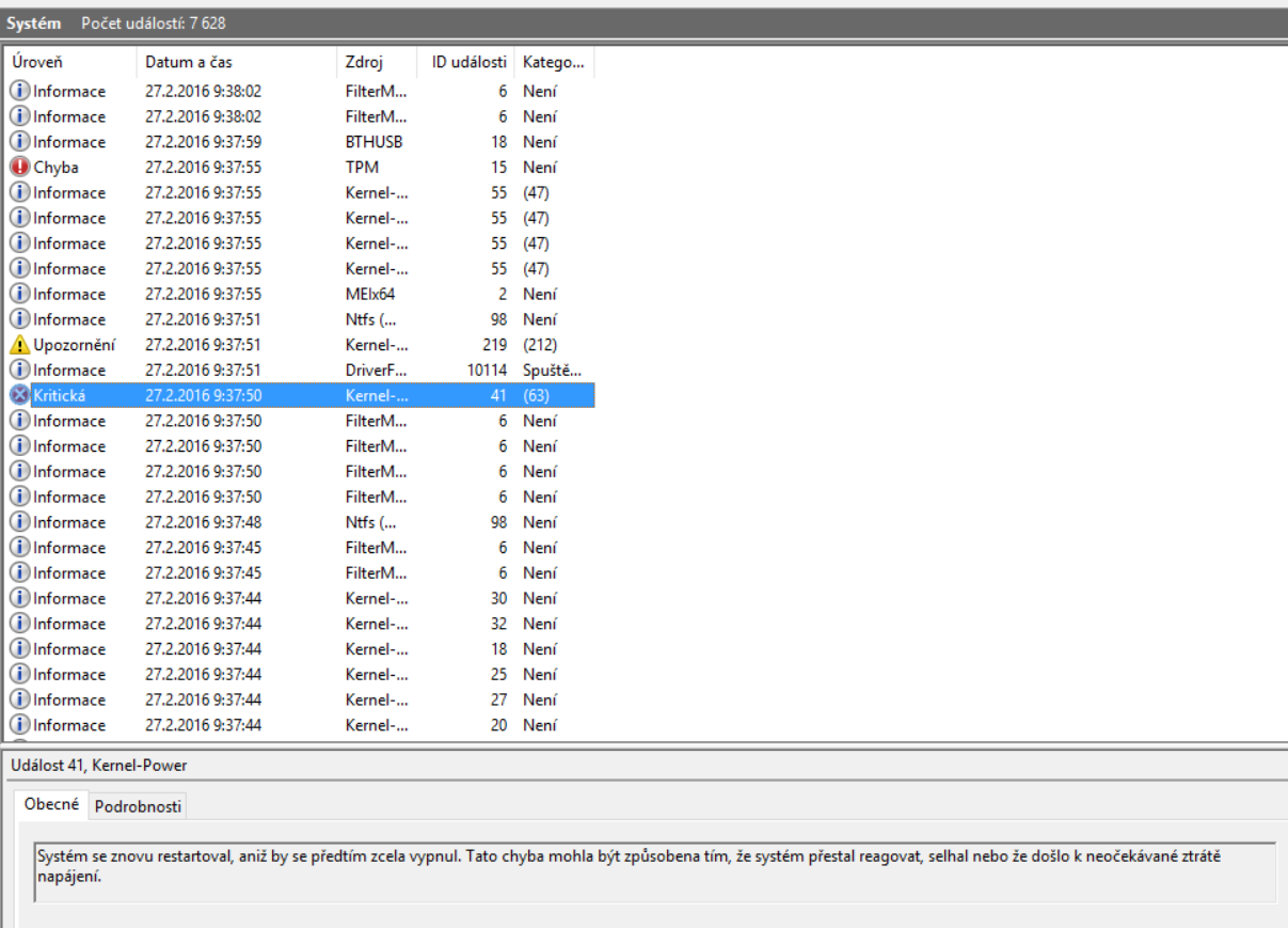 Včera se mi stala taková věc, hral jsem CS:GO, když bez varování se notebook vypnul. Žádná modrá obrazovka, hláška, nic, jen se vypnul. Měl jsem notebook připojený na zdroji, baterie plně nabita. screenshot přikládam, Aktualizoval jsem bios a chipset, i tak je stejna chyba v hlášení, ale ještě se tak nevypnul. Poradíte ? Děkuju