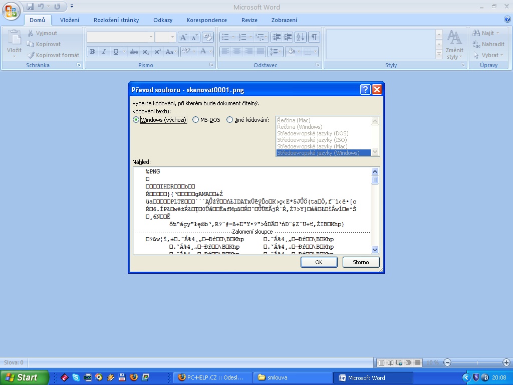 Zdravim vsechny,muze mi prosim nekdo poradit se skenovanim.Myslel jsem ze kdyz naskenuju nejakej text a dam ho do wordu ze se snim da pracovat.Ale zatim at to mam v jakem-koli formatu tak mi vyskoci tabulka PREVOD SOUBORU a at tam vyberu cokoli tak v nahledu jsou uplny nesmysli.Diky za radu.