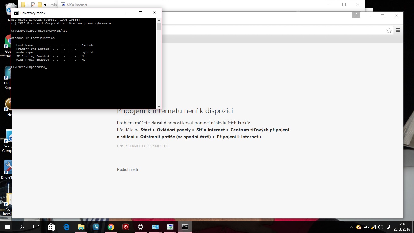 prosím o radu. Včera jsme aktualizovali windows 8 na windows 10, nicméně okamžitě po načtení systému se nejde připojit k internetu - již k dříve užívaným sítím. Zkoušeli jsme sítě odebrat a zadat znovu, ale nepomohlo. Nejdříve bylo u názvu sítě napsáno "Připojeno, zabezpečeno", nyní jen "Bez internetu, zabezpečeno". Síť je ale funkční, jiný notebook i telefon se připojí.