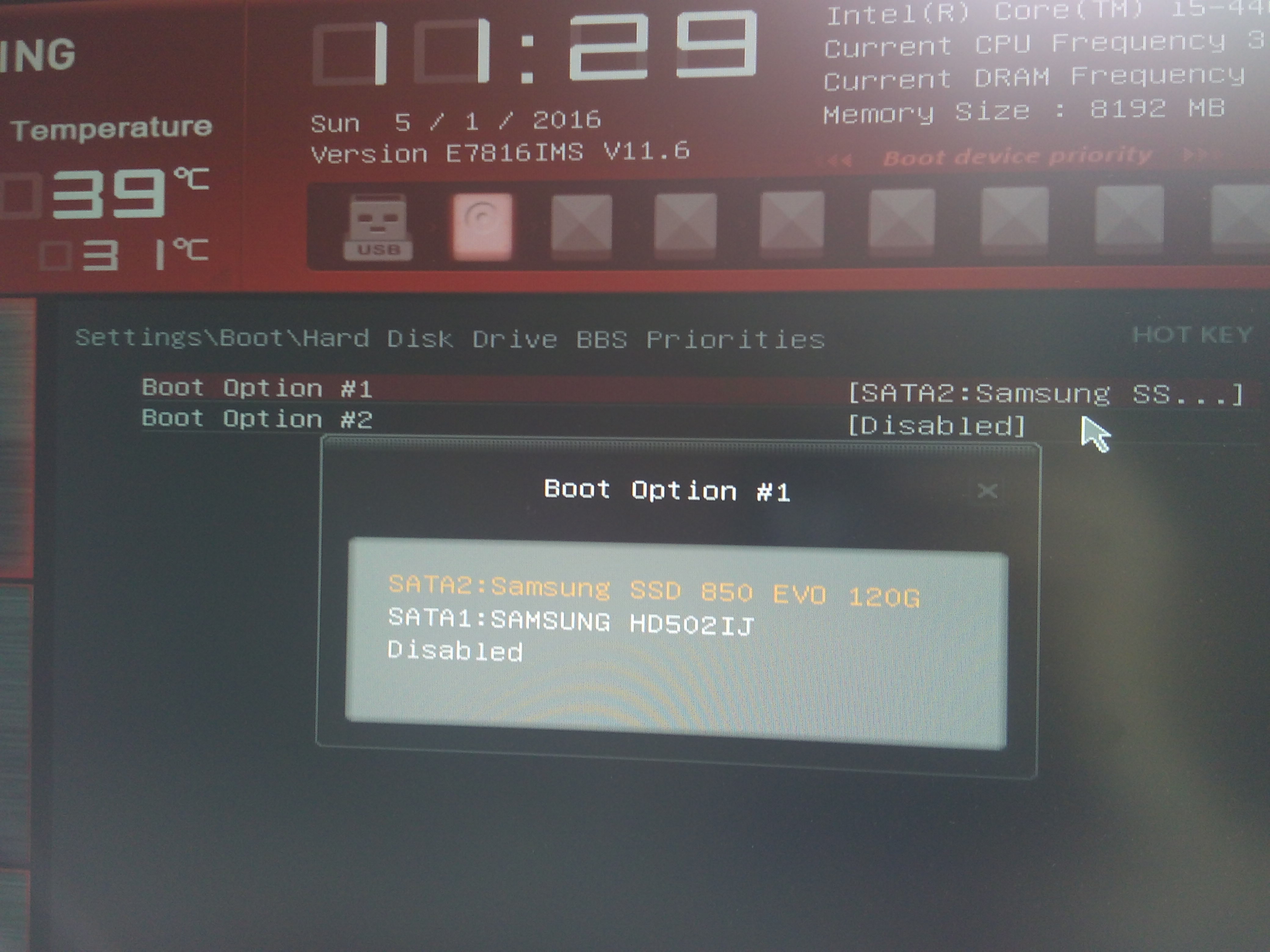 Je SSD nastaveno jako prvni disk pro bootovani v poradi disku (ne bootovacich zarizeni, je tam jeste druhe poradi jen pro disky)?