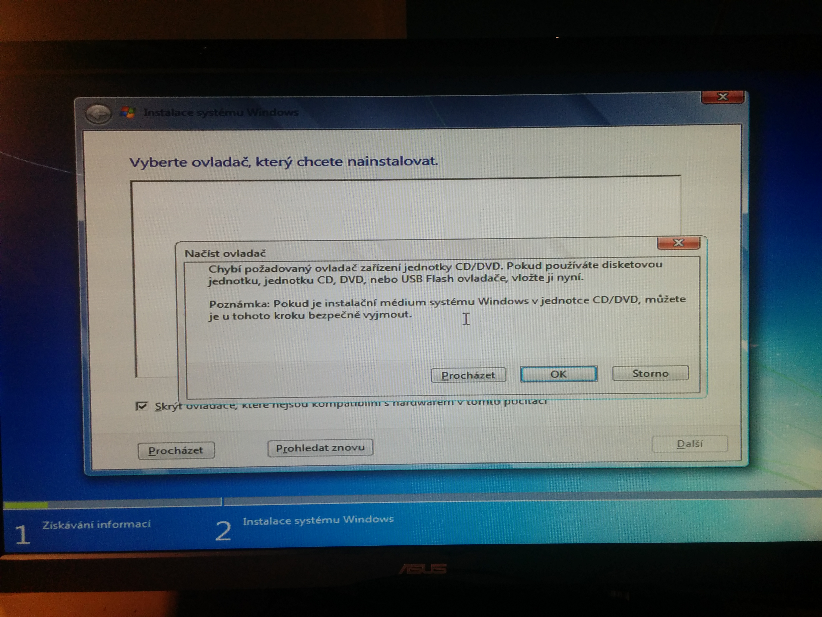 Instalují si Windows 7 home premium z USB, ale narazil jsem na problém...