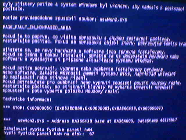 Soubor aswMon2.sys patří antiviru Avast, ten druhý neznám. Může to být nějaká rezidentní ochrana, která koliduje s dalším programem.
