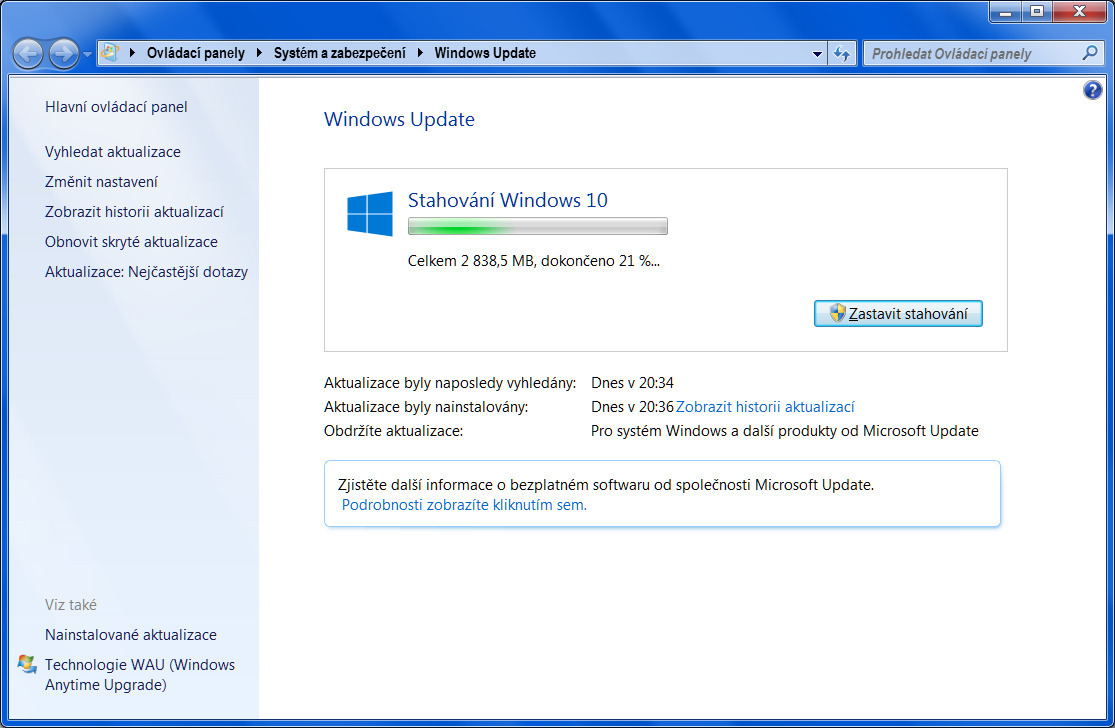Jinak ta aktualizace se mi po asi více jak 3 hodinách ukončila a nainstalovalo se mi nějakých 46 aktualizaci pro Windows 7 a Office. Nyní jsem znova spustil Windows Update a ukazuje mi to, že by to mělo stahovat Windows 10, tak snad se to bez problémů stáhne a to upgrade se konečně provede bez problémů.