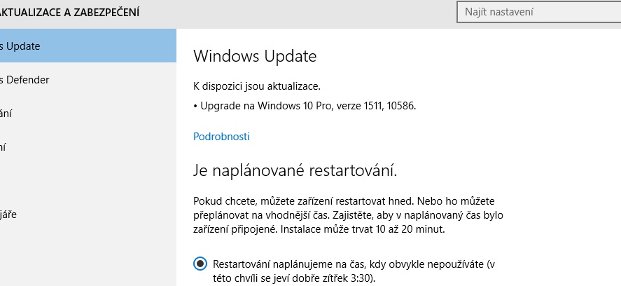 Než PC vymazala tak měla OS se všemi aktualizacemi a bylo to OK. Teď když to aktualizuje tak to funguje do té doby než se při aktualizaci udělá restatrt a pak systém píše "pokus o obnovení předchozí instalace win" a systém najede, ale poslední aktualizace 1511 tam není a Update ji tu aktualizaci zas nabízí znovu.