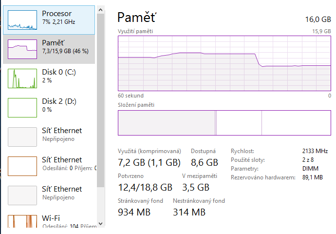 Dej sem prosím screenshot ze Sledování prostředků, záložka paměť.