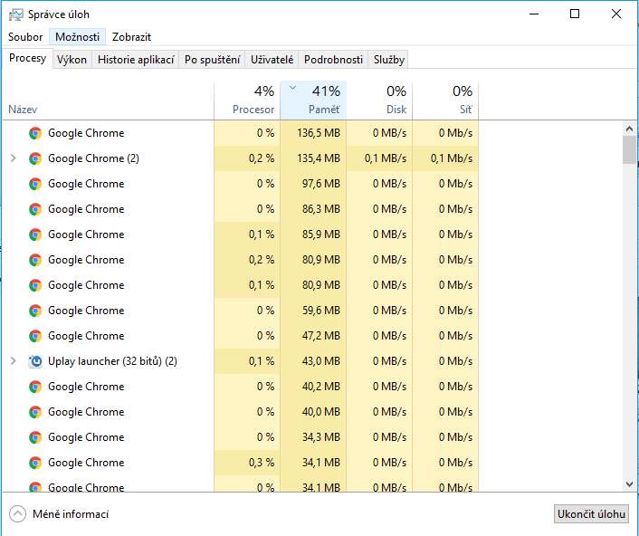 No, až tak divné mi to nepřijde, když to sečtu podle správce úloh tak Chrome dává tak 3GB+, ono to tak klidně může sedět, mám těch oken otevřených docela dost (40+ tabů), ale nechápu proč by kvůli tomu nefungovala hra.. Ještě něco co můžu udělat mimo ten memtest? (Zkusím ještě vypnout chrome při hraní)