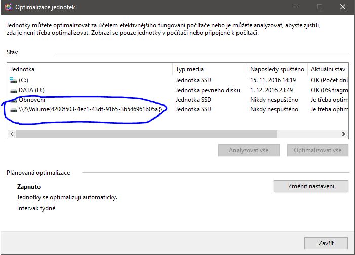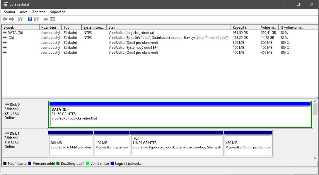 Tady je screen ze správy disků, je v pořádku že tam je 2x oddíl pro obnovení?