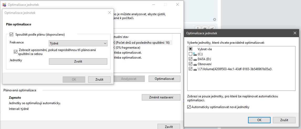 Takhle je to nastaveno správně? Vůbec jsem nevěděl že se automaticky disky defragmentuji..