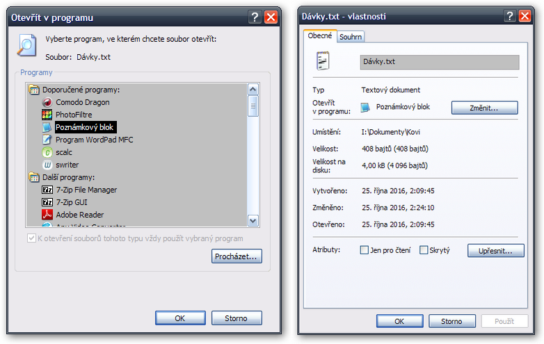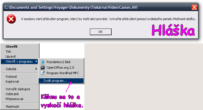 soubory jdou normálně otevřít poklikáním na ně myší a mají ikonku programu, ve kterém se spustí. Když to chci spustit v jiném programu, tak nemůžu zvolit tlačítko ZVOLIT PROGRAM na panelu. Hláška.