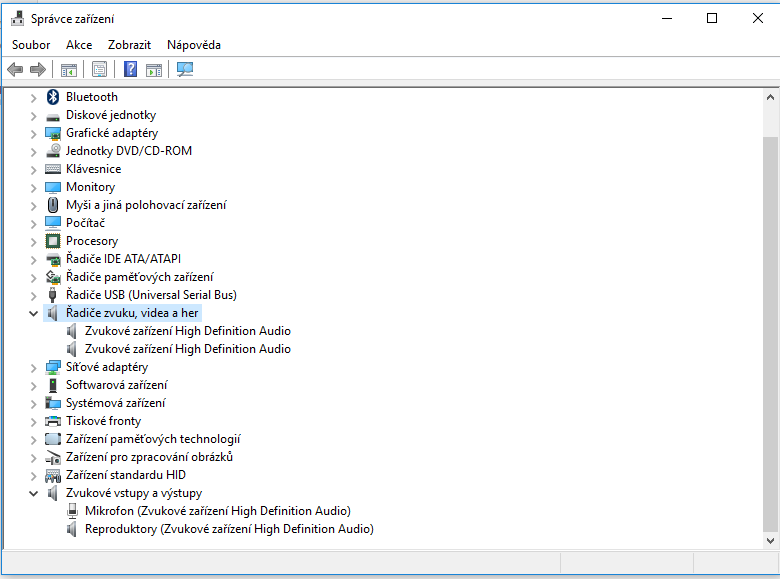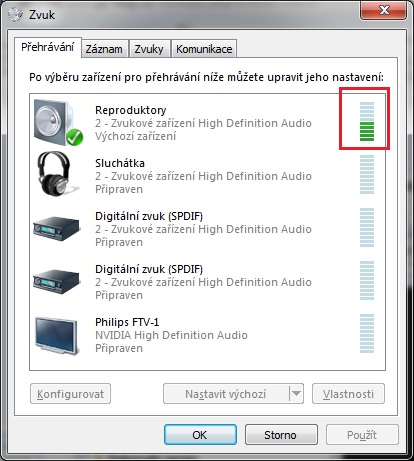 Dej sem screen ze správce zařízení, rozkliknutý na položce zařízení zvuku, videa a her. A dále screen zařízení pro přehrávání - viz. příklad.