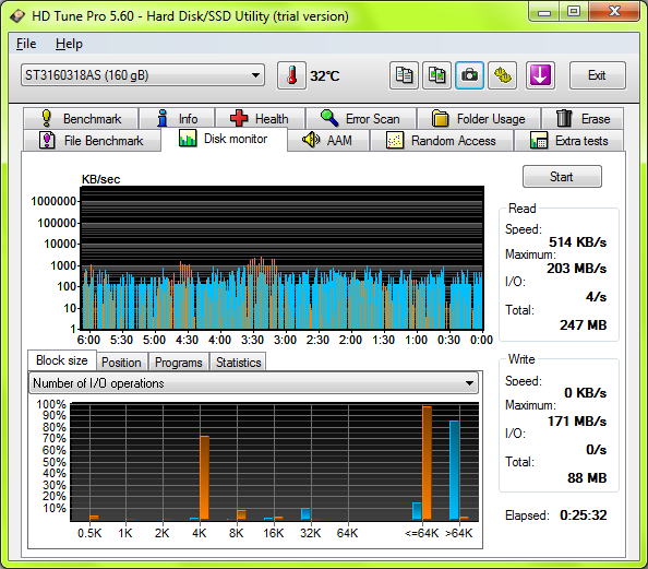 Stáhni si HDD Tune a Crystal disk info a spíš sleduj stav a zdraví disku.