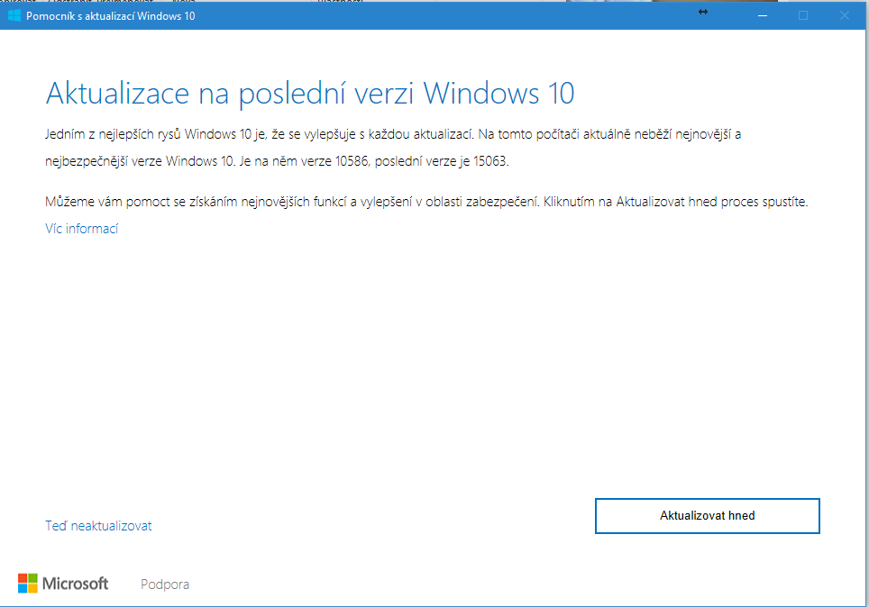 Dobrý den, chtěl bych aktualizovat Windows 10 z verze 10586. Stáhl jsem z webu Microsoftu software na aktualizaci. Systém si klasicky stáhne aktualzaci z internetu, ale při její instalaci se vždy zasekne na 32%. Jednou jsem zkoušel nechat běžet PC celý den, ale nic se nestalo. Po neúspěšné instalaci se vrátím do běžného systému přes nouzový režim. PC, kde aktualizaci provádím je Lenovo ideacentre b350. Kde by mohl být problém?