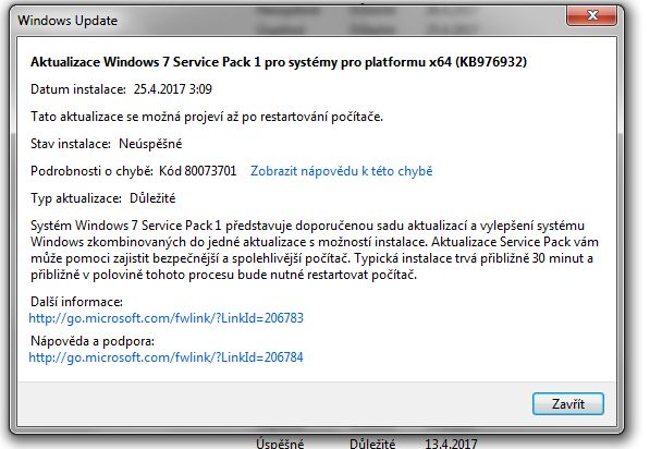 Nejde mi nainstalovat windows servs pack 1 Vyřešeno