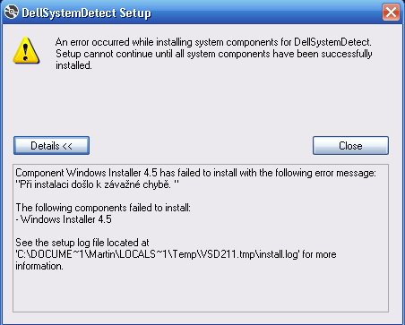 Snazi se to aktualizovat Windows Installer na verzi 4.5.