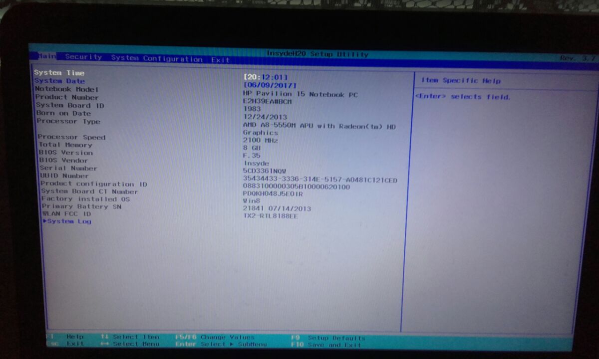 Je to postarší HP Pavilion 15. BIOS je klasický notebookový, žádná možnost flashe tam nikde není.