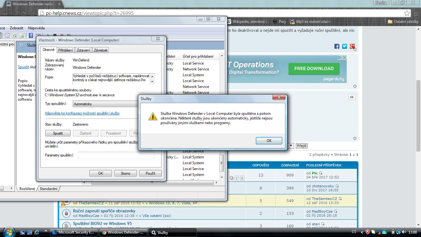 Re: Nejde spustit/zapnout WINDOWS DEFENDER