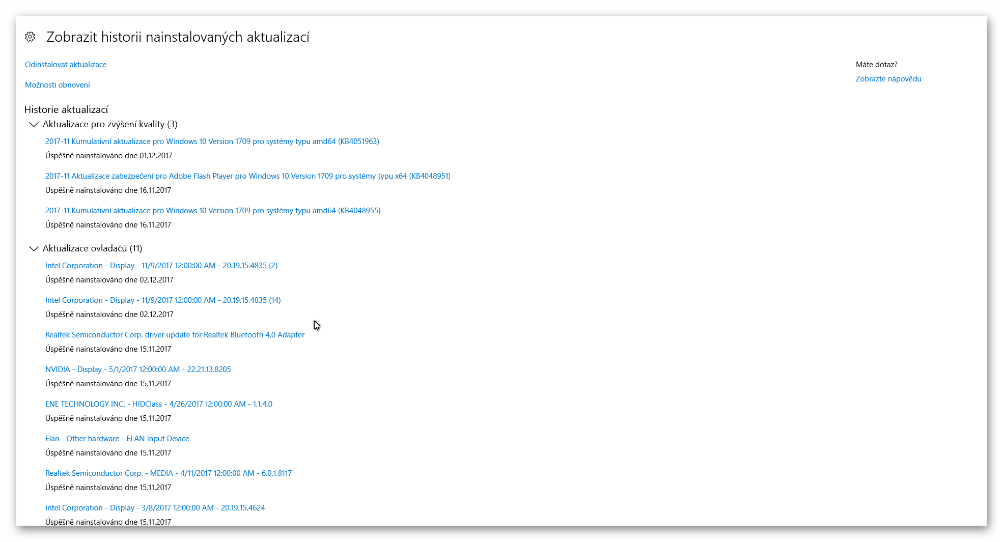 tohle je trochu choulostivější... pořád mi tam jedna aktualizace "vysí", viz. obrázek, jedná se o aktualizaci pro Intel grafiku, odklikávám to asi už dva dny, pokaždé to ukáže, že se to nainstalovalo, ale přitom se mi stále ukazuje a žádá instalaci...