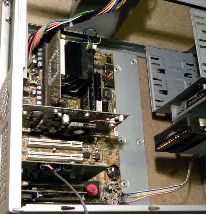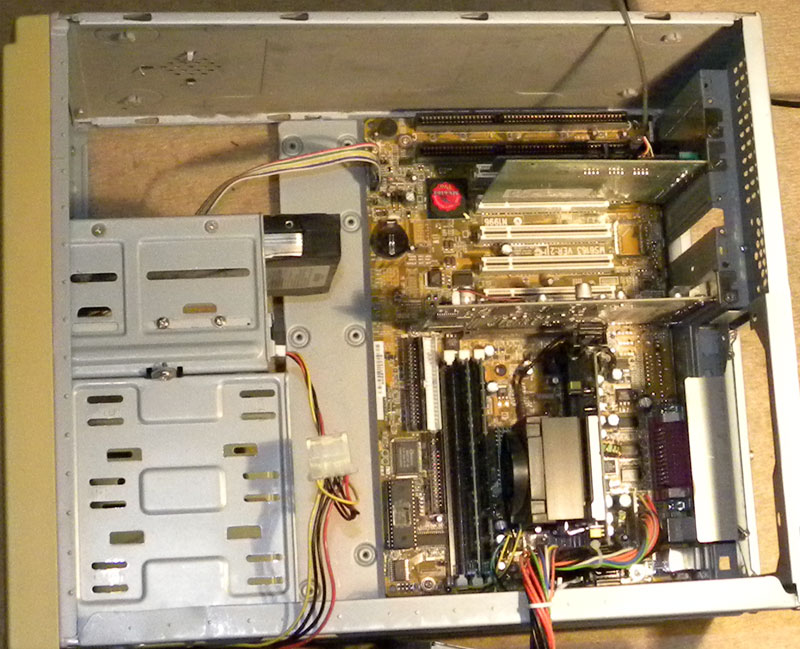 Na uvedené sestavě jsem "řádil" já, poté ji zdědil potomek. Později byl systém Win98 nahrazen WinXP, kdy byl přidán ještě další modul 256MB RAM. Procesor je původní a už od začátku bylo počítáno s tím, že bude přetaktován - FSB zvýšena z 66 MHz na 100 MHz, tedy frekvence procesoru z 633 na 950 MHz.