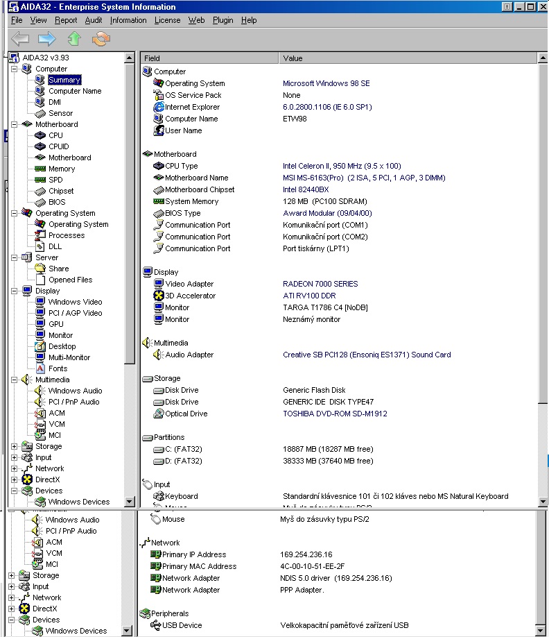 Je to již 20 let od vydání operačního systému Windows 98. Dle mého osobního názoru lepší systém na hry neexistoval, a to ani do budoucna. V uvedené sestavě, pořízené někdy kolem roku 2000, je nainstalován Win98SE. Sestava je v podstatě původní, byla vyměněna paměť (navýšení) a pevný disk.