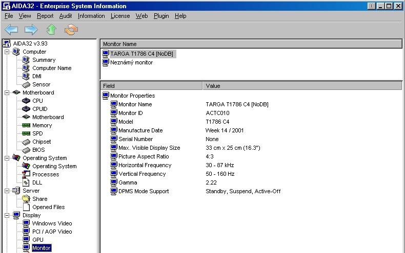 Monitor není původní, byl pořízen "až" v roce 2002. Opět funguje doteď.