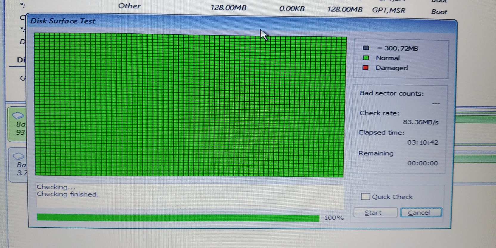 Najskôr si klikni PTM na označenie disku DISK 1-Surface Test a tam štart, či sa to spustí.A daj sem screen , nech vidieť , ako je disk rozdelený.
