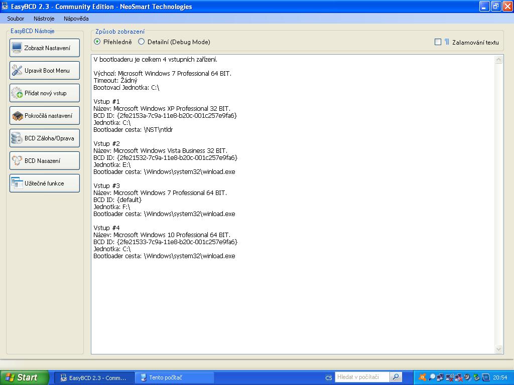 Potřeboval bych aby výchozí operační systém byl Windows XP nebo Windows 10.