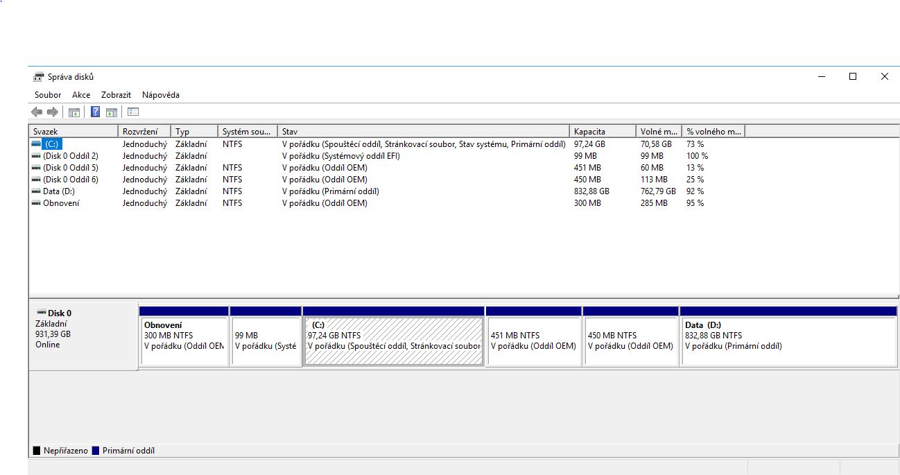 Mám disk rozdělený na dva oddíly - C:/ System + D:/ Data