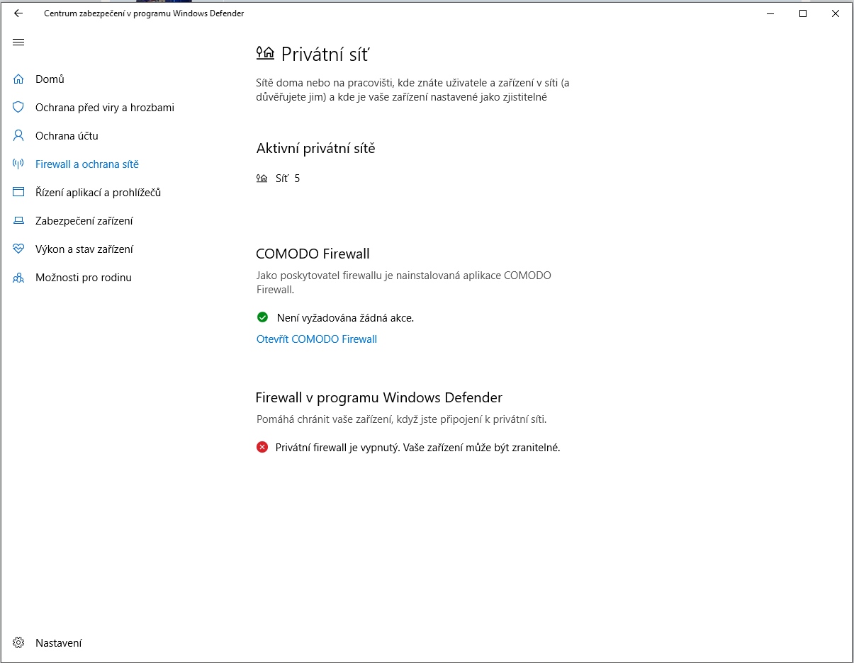 Prostě jsem nainstaloval Eset internet security a firewall jsem nák nenastavoval. Defender je pořád spuštěný viz foto.