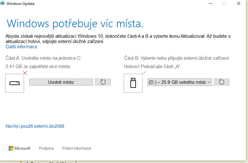 U USB (části B) máš fajfku a ještě tam máš napsáno, že máš řešit část A, tedy uvolnit místo na disku C.