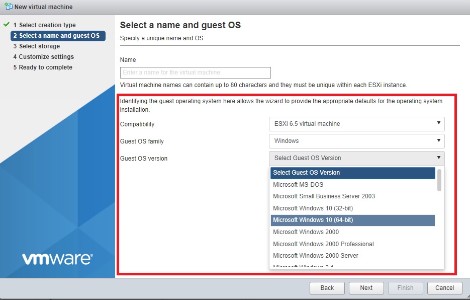 V pohodě, taky vždy pochopím více z praktické ukázky. Neptal se tě VMware při vytváření, jaký OS chceš instalovat? Screen1 je ze serverového prostředí ESXi, screen 2 pak z klientské aplikace Oracle VM VirtualBox. (Screen2 je ten první obrázek, Screen1 ten spodní).