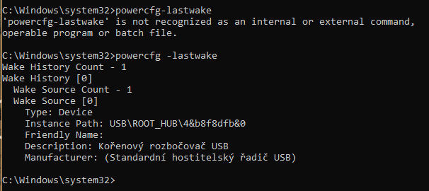 Ahoj, vypsalo mi to viz screen shot, ale když sem procházel všechny kořenové usb rozbočovače, tak nikde v napájení zakrtnuté samovolné zapínání pc není. Co dělat dále. Tak nějak ztrácím nápady. Všude je jen, že zařízení povoluje vypnout pc. Děkuji moc za pomoc