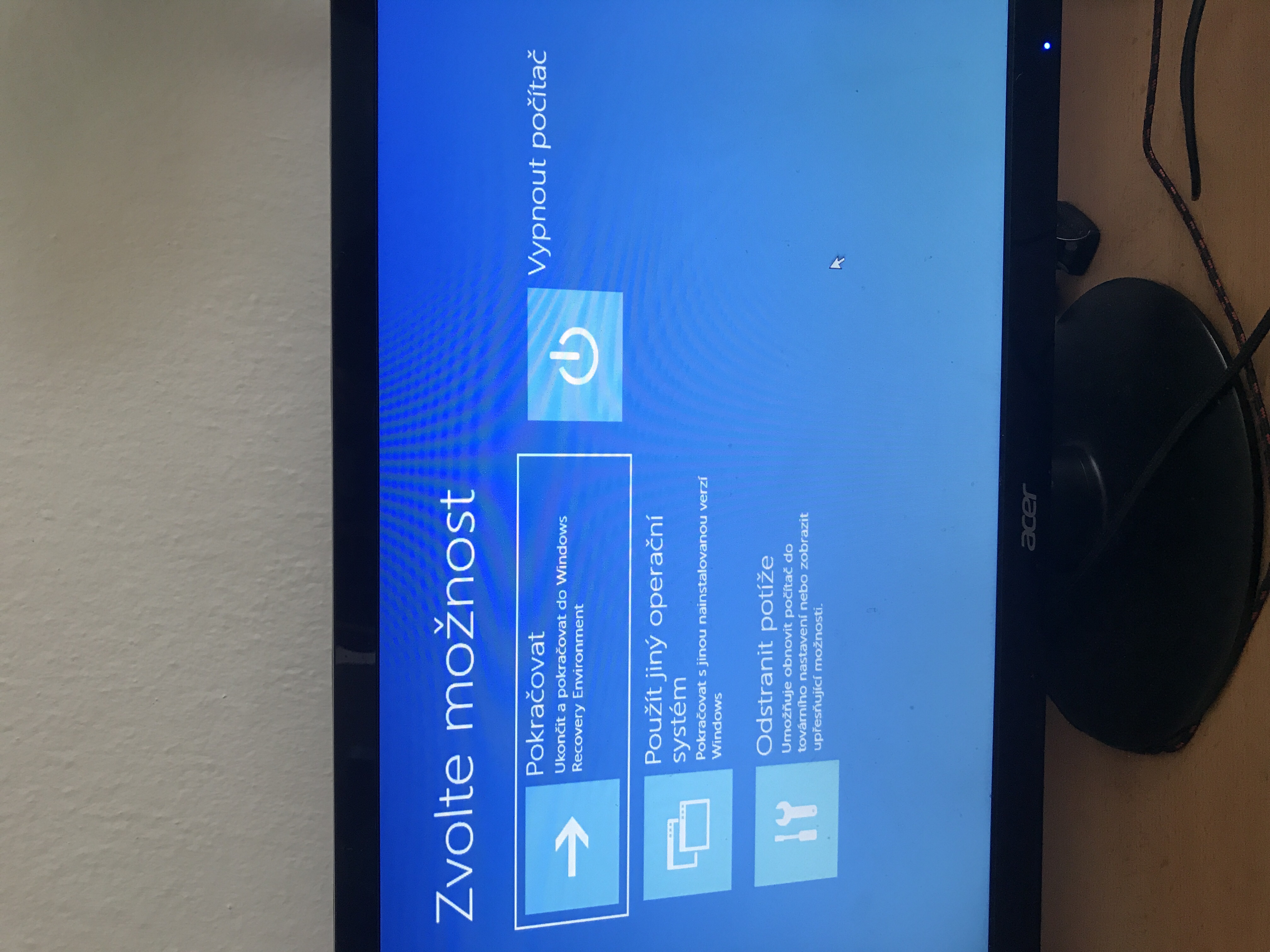 použil { – pravý alt+b } – pravý alt+n, potom exit a vybral Prejsť na Win10 a PC nabehol v Núdzovom režime.