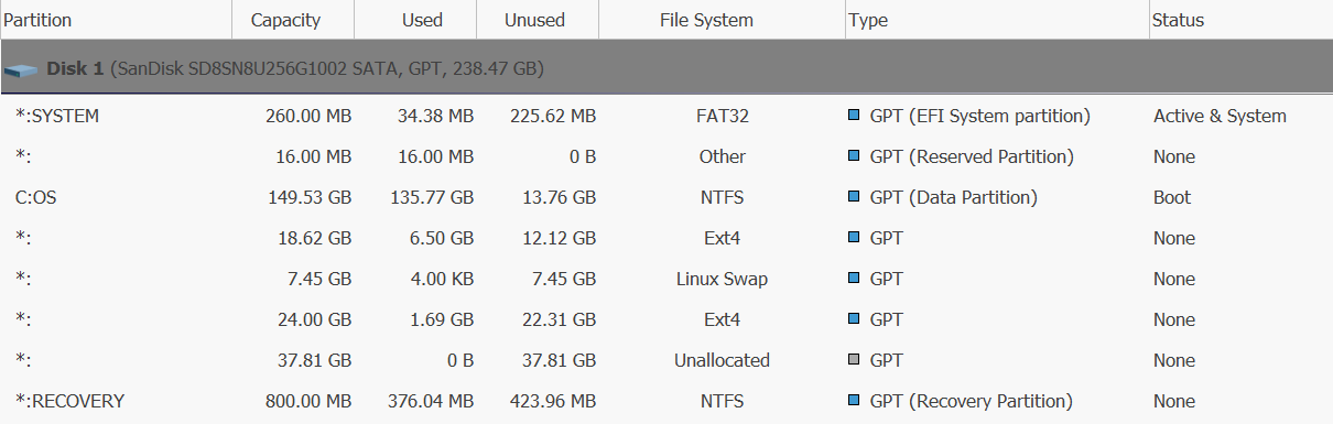 Škoda , že si nedal screen , ako to vidí AOMEI.
