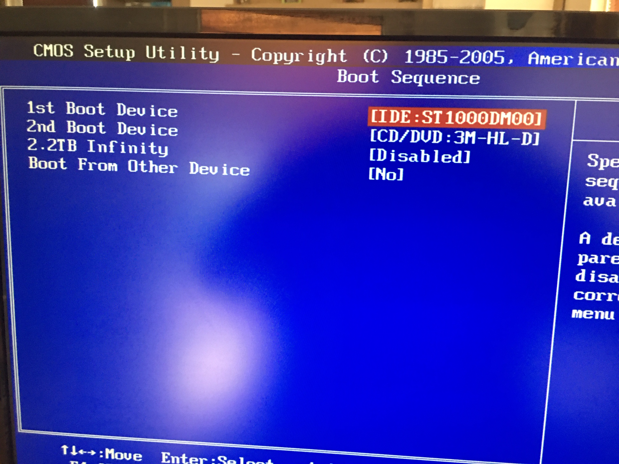 Jo promiň, to jsem přehlédl. Můžeš v menu 1st boot device vybrat jiný disk?