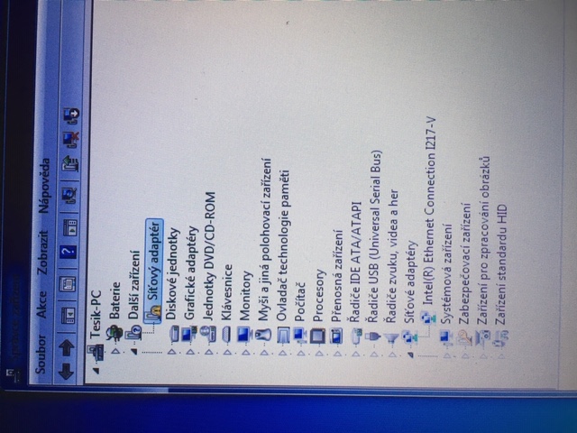 Ve Správci zařízení ten "Síťový adaptér" s vykřičníkem.