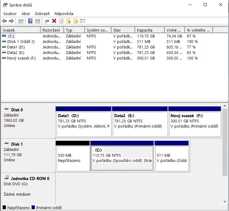 Udelej screenshot ze spravce disku, at vidime co kde je.