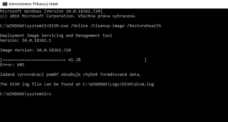 Zadej příkaz: "DISM.exe /Online /Cleanup-image /Restorehealth"