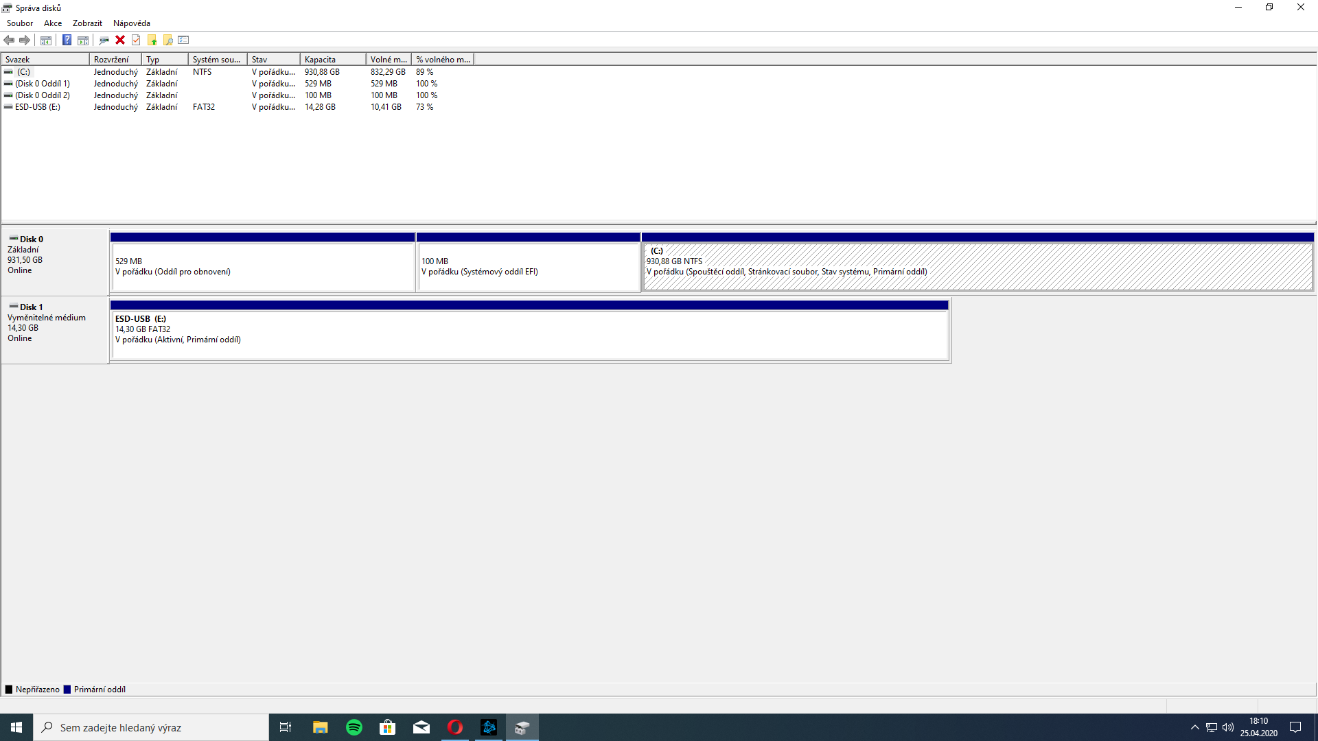 A hod sem obrazek ze Spravy disku (nebo text z diskpartu), kde bude videt disk i fleska.