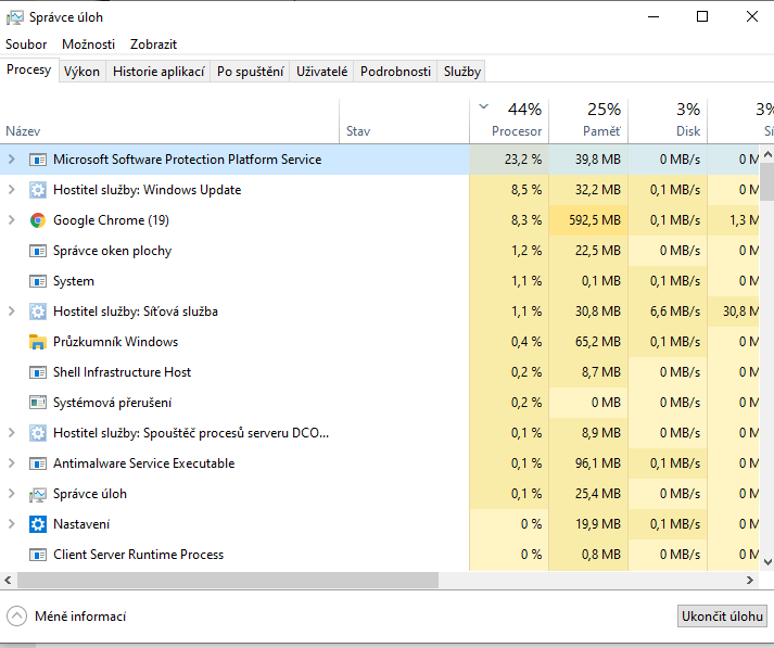 nedávnou jsem objevil, že na pozadí jede každou minutu sppsvc.exe Microsoft Software Protection Platform Service a bere se cca 25% procesoru. Je tohle normální? Popřípadě co vůbec s tím?