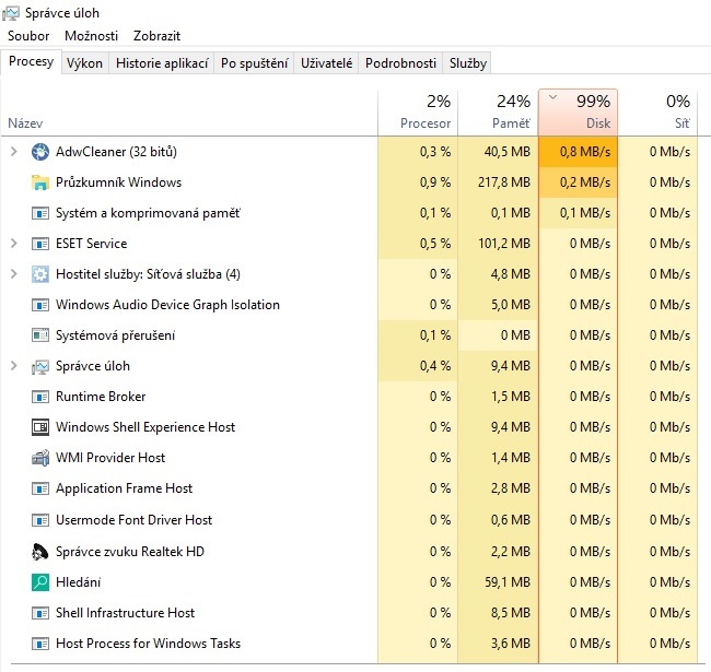 ve správci úloh není žádný proces který by nějak vytěžoval cpu